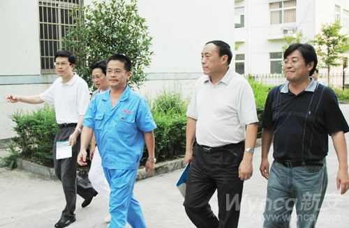 8月17日,中共浙江省委第三巡視組到開化縣開展巡視工作,巡視組組長(zhǎng)鄔金水(右二)一行在開化縣縣長(zhǎng)金明(右一)的陪同下,到開化元通公司進(jìn)行實(shí)地考察。