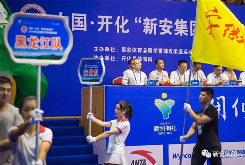 國家體育總局舉摔柔運(yùn)動(dòng)管理中心黨委書記畢東海,浙江省體育局局長鄭瑤,浙江體育職業(yè)技術(shù)學(xué)院院長、兩屆奧運(yùn)冠軍占旭剛,衢州市委副書記、市長湯飛帆,市人大常委會(huì)副主任、開化縣委書記項(xiàng)瑞良等主要領(lǐng)導(dǎo)出席了開幕式。作為此次賽事的冠名單位,集團(tuán)董事長吳建華(右一)特邀參加了開幕式。