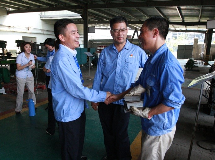 瀏覽量:7703 7月25日,集團(tuán)黨委書記潘秋友、總部黨委書記陸冬云和所屬支部書記頂著烈日,帶著全體黨員的心意,先后來(lái)到白南山留守組、馬目園區(qū)各工廠和部門,將一箱箱加多寶、鹽汽水送到員工手中,向他們道一聲:“你們辛苦了,注意防暑降溫!”