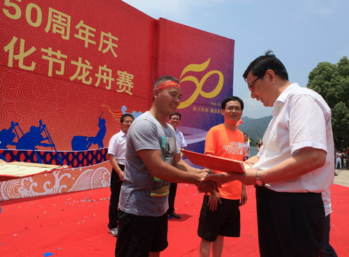 瀏覽量:4510 6月20日,新安集團(tuán)創(chuàng)建50周年慶暨第四屆新安文化節(jié)龍舟賽在新安江上舉行,共有16支代表隊(duì)參加本次競賽。